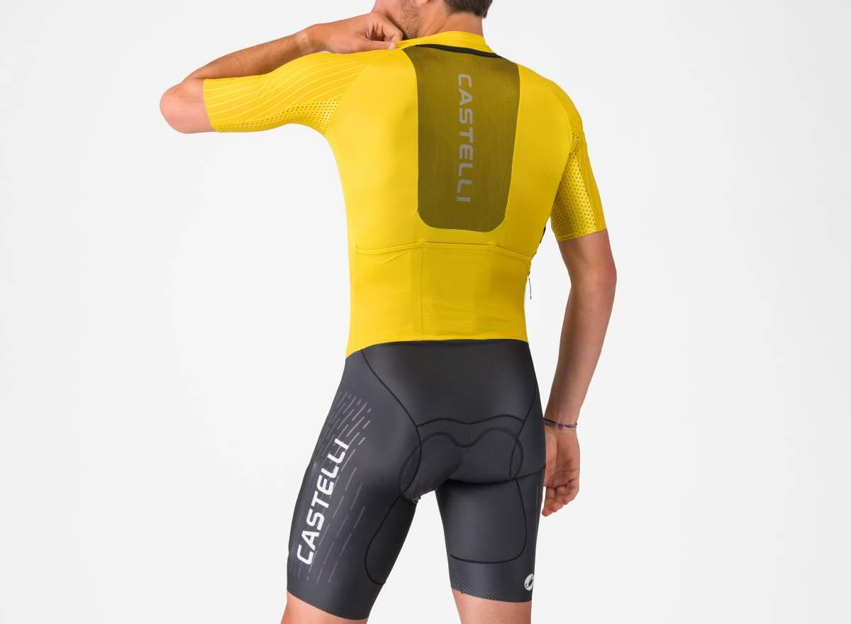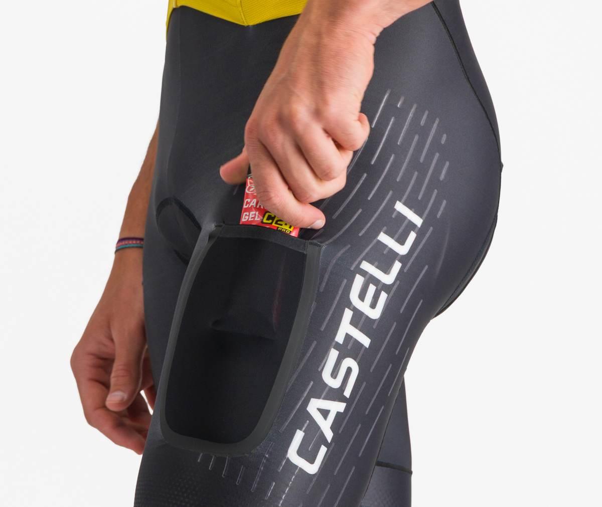 The Unlimited Speedsuit pairs the Unlimited Pro 2 Jersey with Free Aero Race S Bibshorts – Castelli’s fastest and most-comfortable Bibshorts to date. The Shorts are constructed from an aerodynamic Forza2 Stretch fabric, delivering a 3% decrease in CdA, and feature a Progetto X2 Air Seamless seat pad, providing comfort on even the longest of rides.