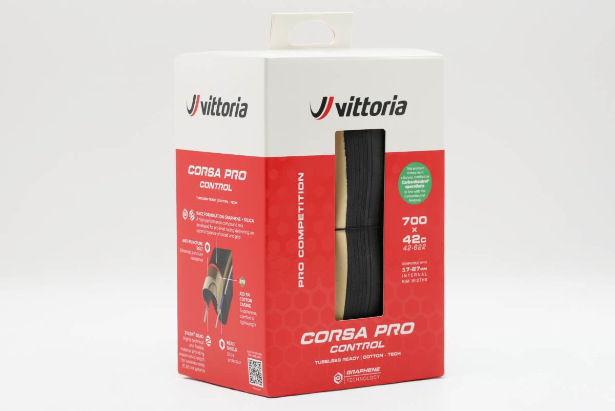 Corsa PRO Control is part of Vittoria’s Corsa PRO road tire family, the brand’s top-of-the-range road offering, where all models share a supple 320 TPI cotton casing. Within the range, Corsa PRO Control is the choice for the most demanding race conditions, such as the Northern Classics; Corsa PRO is designed for all-round racing, while Corsa PRO Speed is dedicated to time trial performance. The new 38 mm and 42 mm sizes use the same proven Corsa PRO Control construction, tread pattern and Graphene compound that riders already trust in narrower widths.